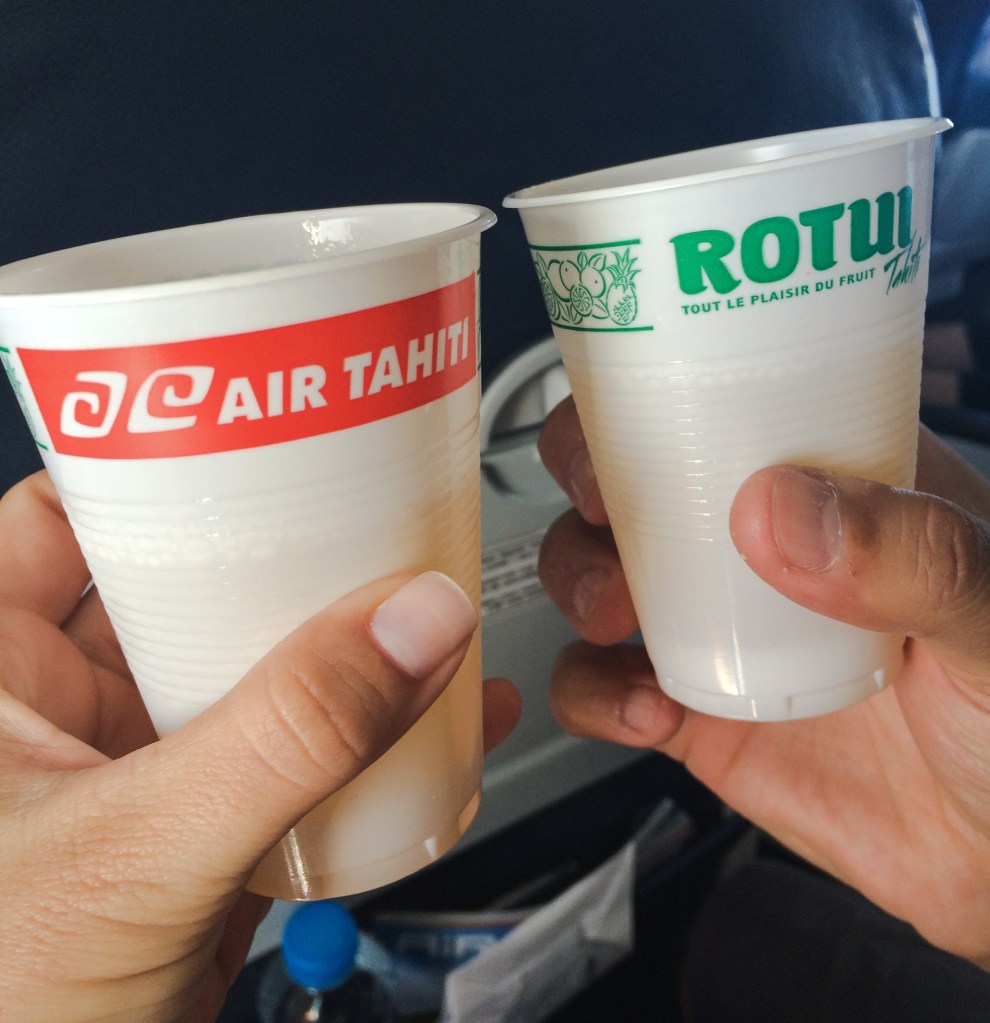 Como chegar na Polinésia Francesa: optamos via Los Angeles. Com as milhas do cartão de crédito não tivemos despesas com as passagens até Los Angeles (Delta Airlines), pagando apenas as passagens de LAX – PPT via Air France. Os voos para a Polinésia Francesa permitem bagagem de 23 quilos + a bagagem de mão. Devido aos horários dos voos para Papeete (a decolagem é sempre às 23:55), passamos o dia descansando em um hotel nas proximidades do aeroporto de Los Angeles, pois chegamos lá por volta de 11:00. Algo que eu achei legal durante o voo para a Polinésia Francesa: não lembro exatamente em que momento, mas as comissárias de bordo trocam os trajes da companhia por trajes um pouco mais tropicas e acessórios com pérolas negras para entrar no clima.