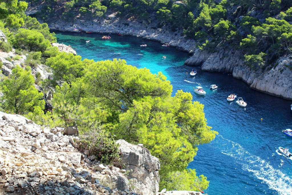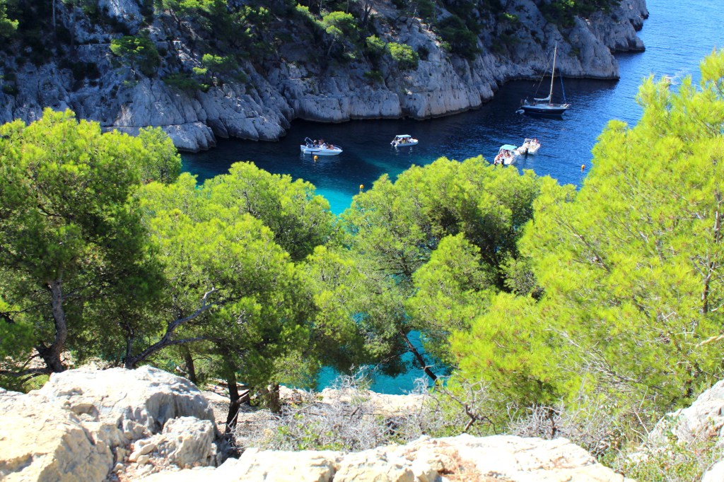 Também existe a possibilidade de ir de barco até as calanques de forma mais tranquila, mas aí não é possível visualizar a paisagem de cima.