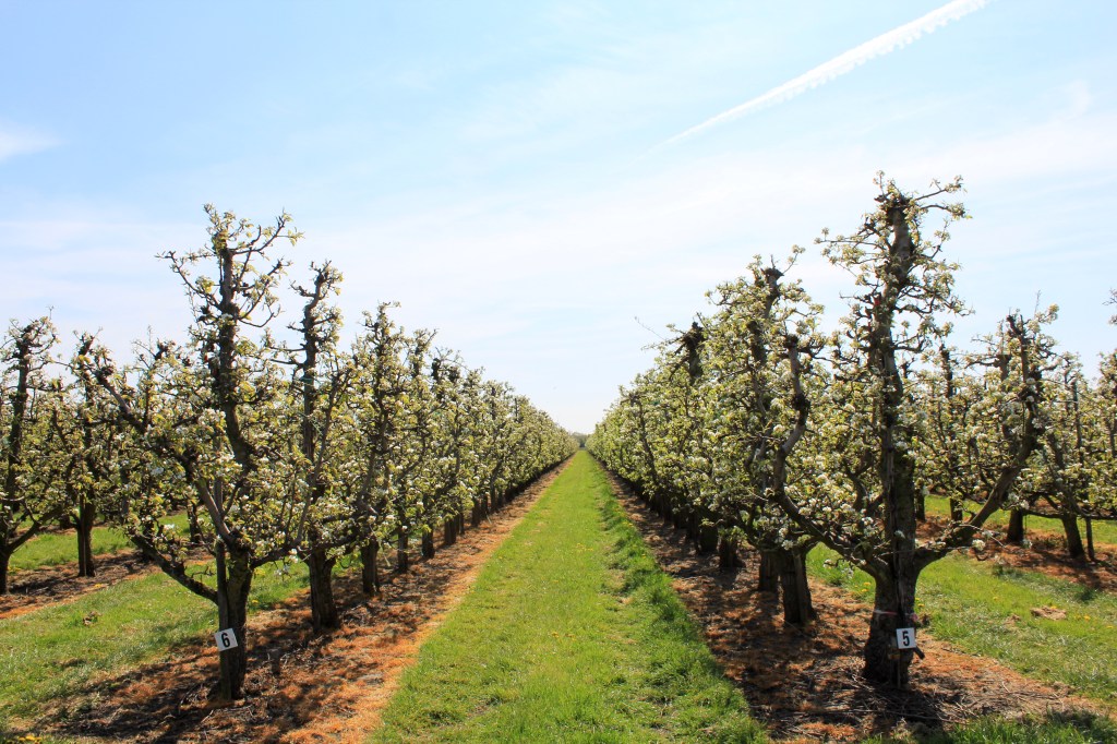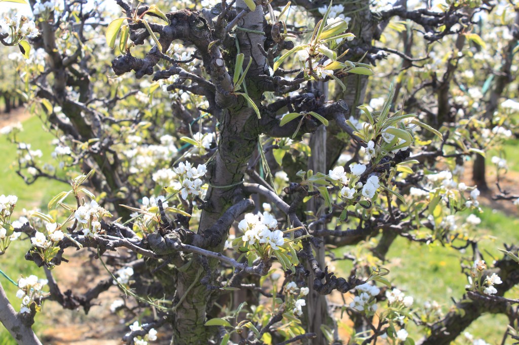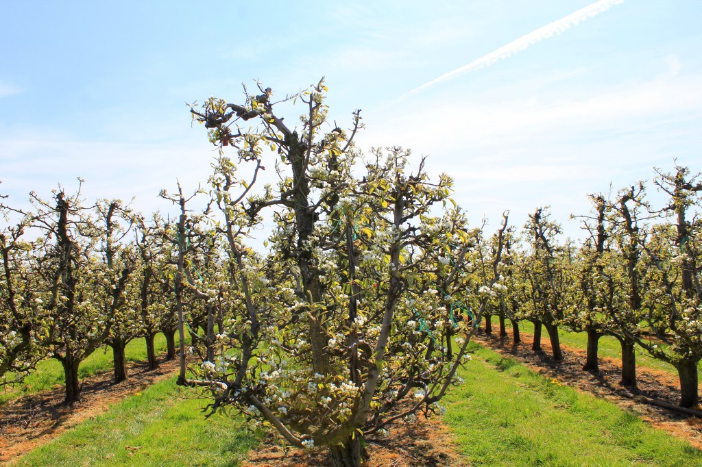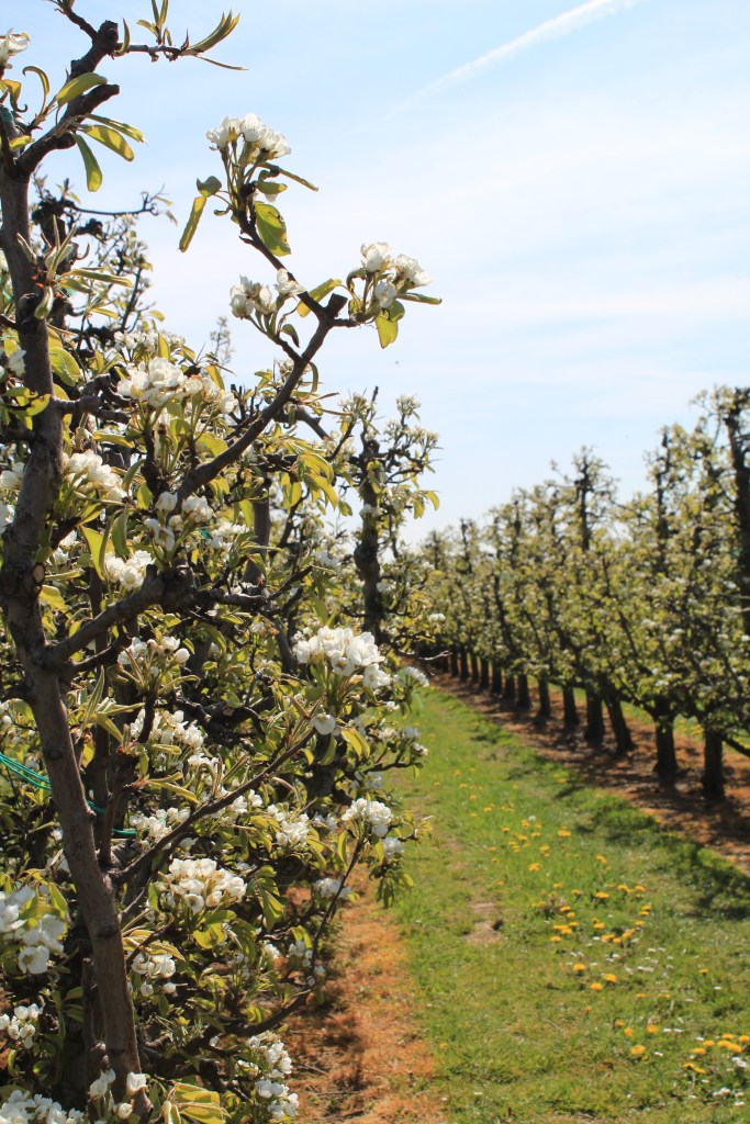 Na região onde ficam os campos de tulipas também tem campos com pereiras e as flores que antecipam o nascimento do fruto também são bem graciosas.