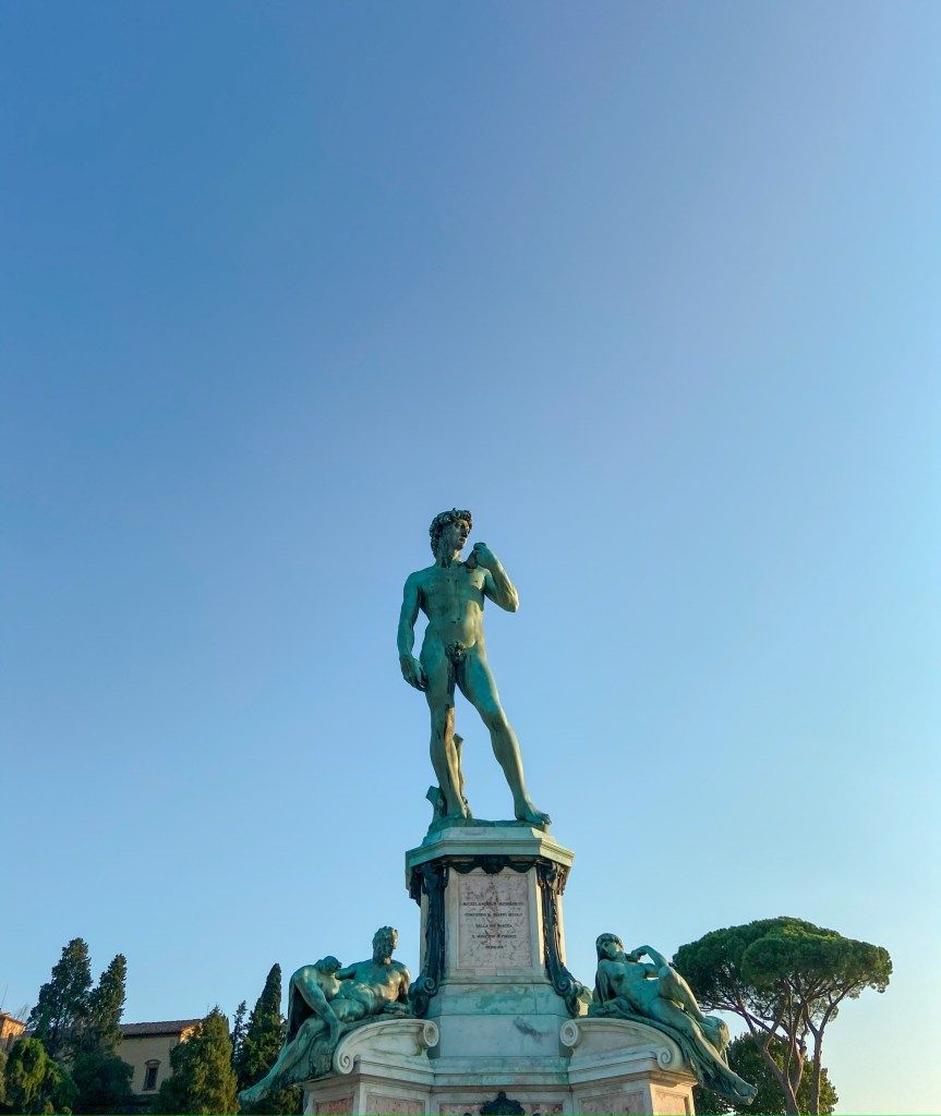 Em Firenze, fizemos quase tudo caminhando, pois o apartamento onde nos hospedamos ficava próximo da maioria das atrações que visitamos. Utilizamos o carro apenas para irmos até a Piazzale Michelangelo porque o local era mais distante do centro.