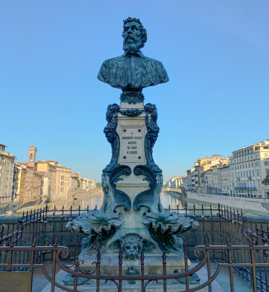Foi construída como é hoje em 1345, após uma inundação. Uma obra de arte homenageia o ouvires Benvenuto Cellini na ponte.