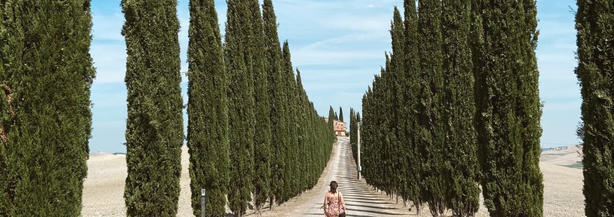 Partimos de Firenze (onde nos hospedamos) para visitar os vilarejos Montalcino, Pienza e Montepulciano em um único dia (cansativo, mas queríamos muito visitá-los e assim realizamos no tempo que tínhamos). O meio de transporte utilizado foi um carro. Viajar de carro pela Toscana é uma delícia por causa das deslumbrantes vistas panorâmicas que podem ser observadas. Entretanto, pode não ser tão fácil dirigir na região e ser necessário estacionar o veículo do lado de fora dos vilarejos e, dependendo, até um pouco distante dos centros históricos e então caminhar.