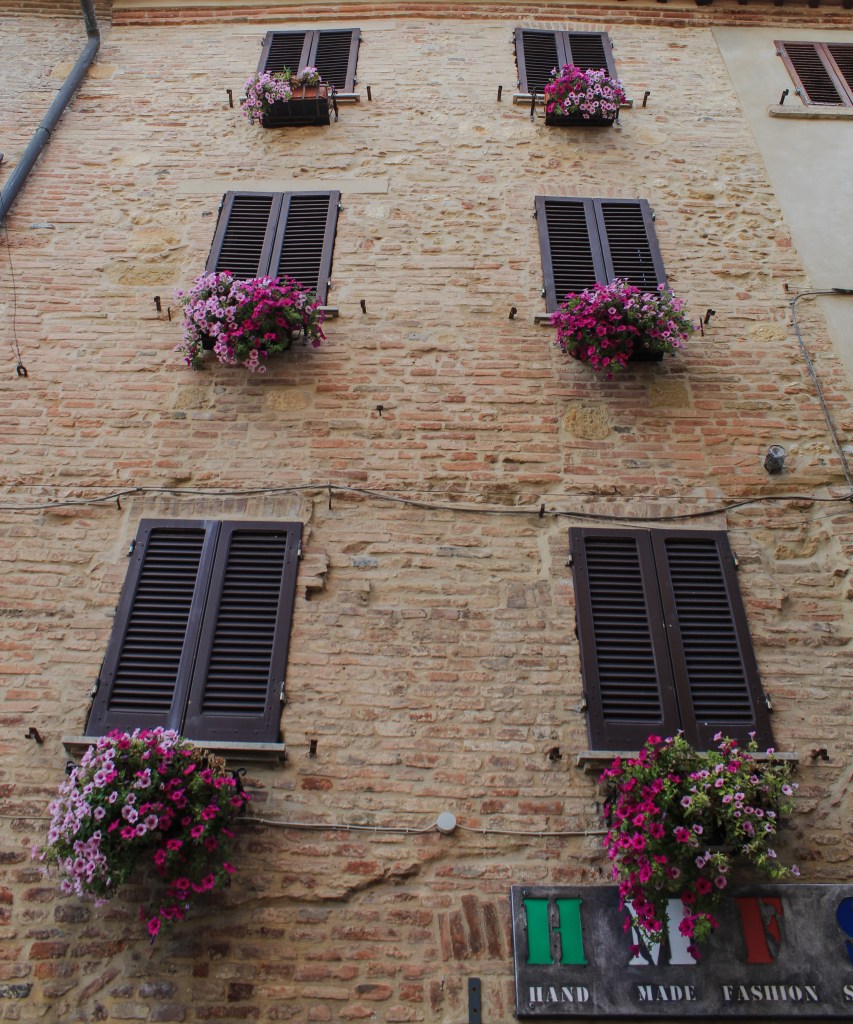 Arrisco afirmar que foi o vilarejo mais charmoso que visitamos na Toscana. As decorações geralmente com flores nas janelas ou na frente das casas chamam a atenção de quem passa.