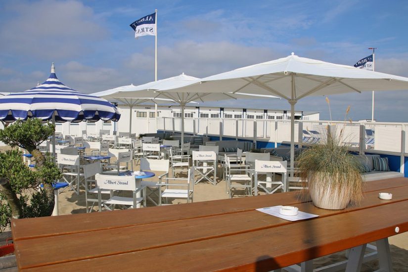 Na maioria das praias são instalados os beachbars (bares na areia com área para relaxar, comer e beber, em grupo ou particular) que permanecem ali apenas durante o verão. A costa belga abriga cerca de 70 deles. Bebida e porções são servidas – mas as porções são um pouco diferentes do que é comum no Brasil, pois os pratos geralmente são frios (foi o que constatei nos beachbars que já frequentei em Knokke-Heist e Oostende).