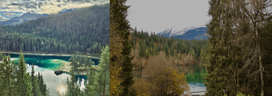 Dia 2 (07/11): Estivemos em dois lagos na região de Flims: Caumasee e Crestasee.