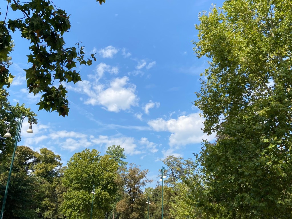 Devido ao calor, nos acomodamos em um banco onde batia sombra das árvores na praça Sempione e ali permanecemos por algum tempo.