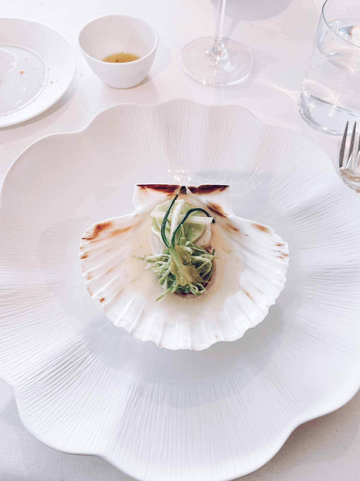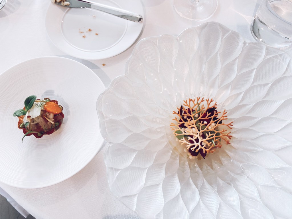 O restaurante oferece serviço à la carte e opções de menu. Nós optamos pelo Menu Boury no horário do almoço. Bebida: eu, grávida, preferi beber apenas água, enquanto o meu marido optou por wine pairing para desfrutar do todo, afinal, todos os vinhos são selecionados pelo sommelier Mathieu Vanneste justamente para potencializar a experiência devido à harmonização.