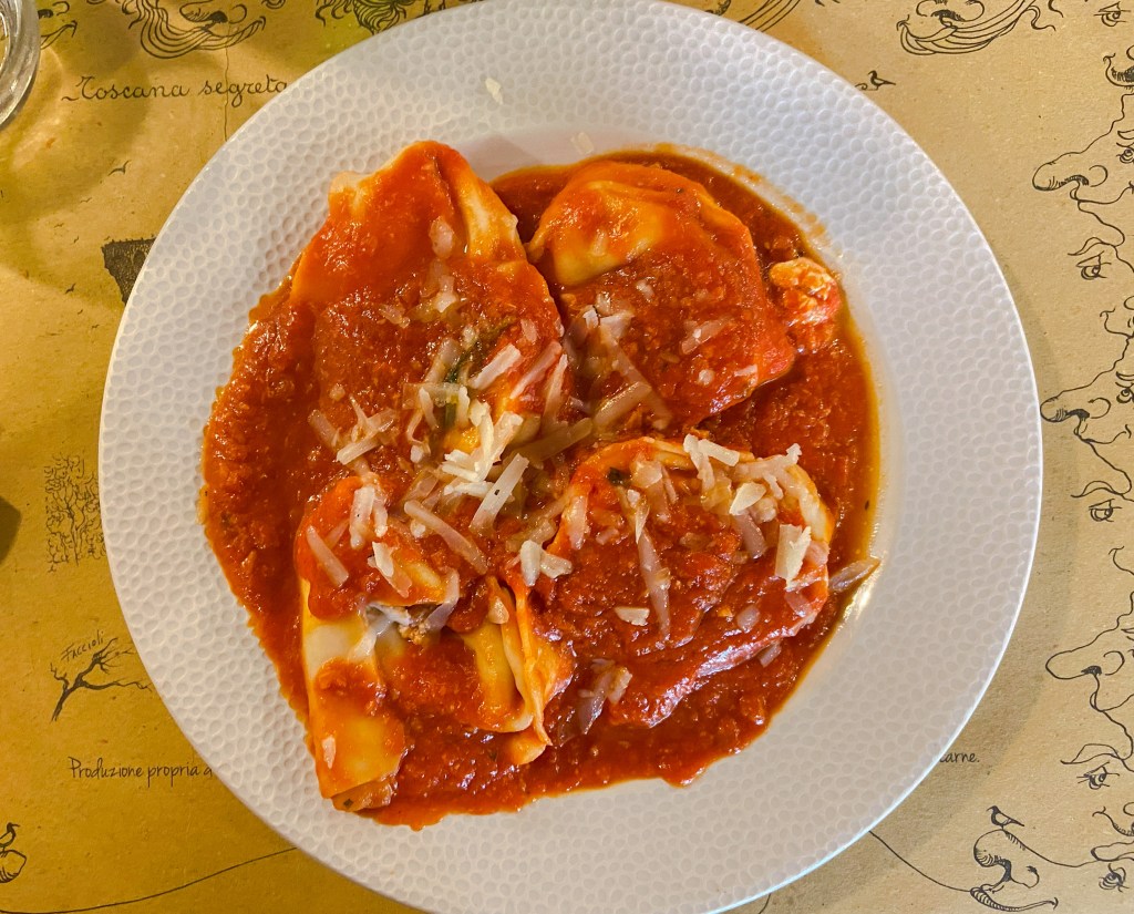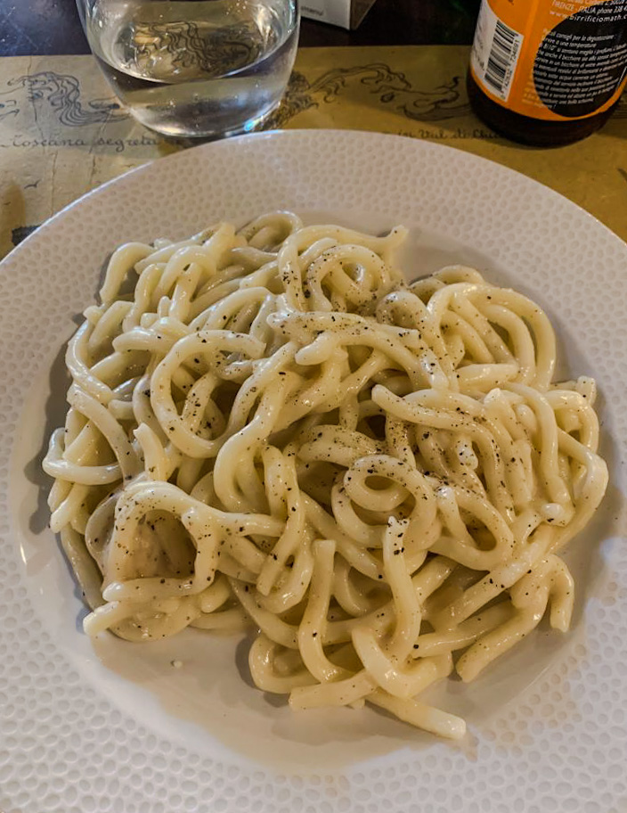 Caminhamos pelas ruas da cidade e almoçamos na Trattoria Fonte Giusta para encerrar nossa visita ali.