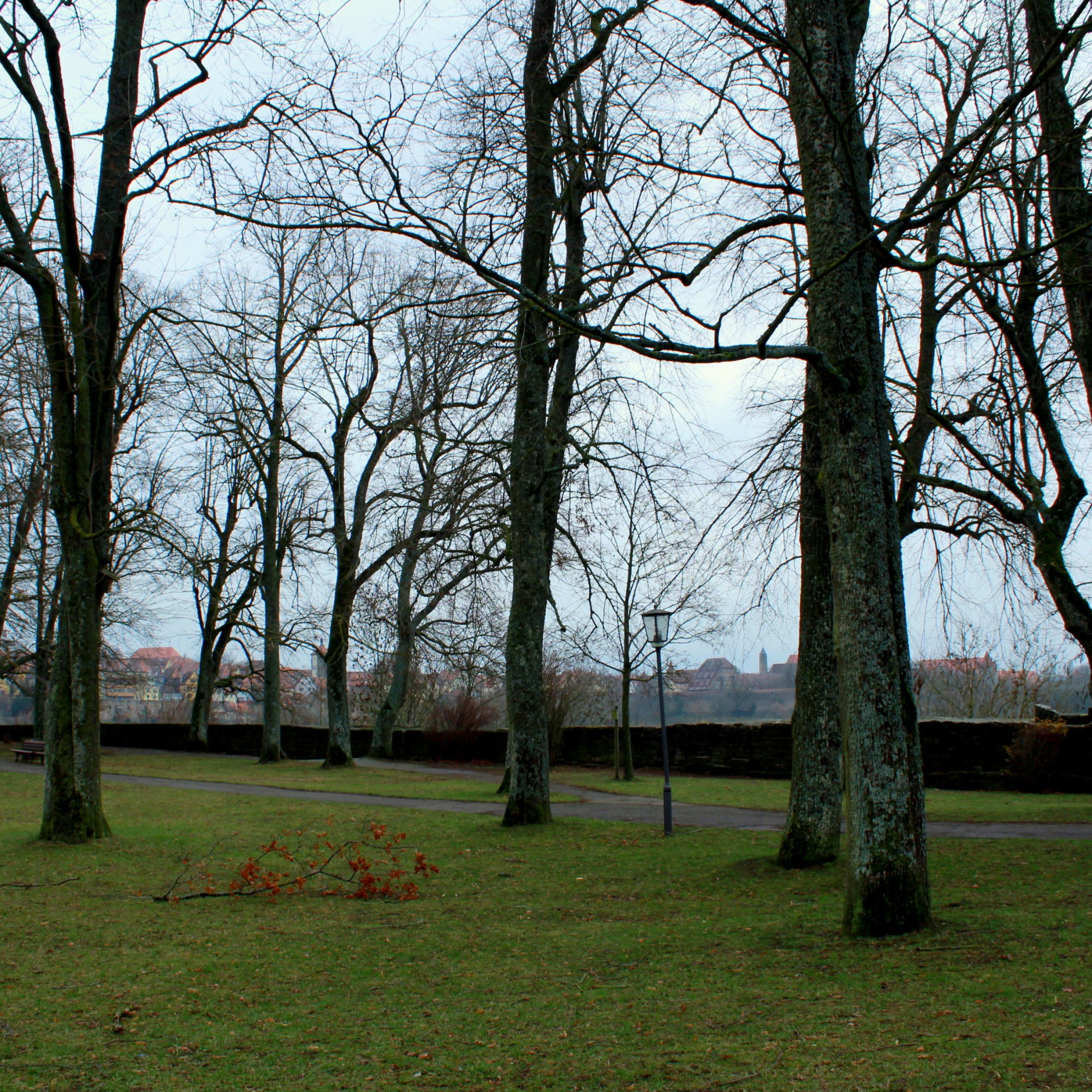 Percorrer sobre a muralha de Rothenburg ob der Tauber: possibilita a visão da cidade de outra forma, entretanto. Nomes de pessoas e de cidades estão grafados nas pedras da muralha, uma forma de agradecimento/homenagem para aqueles que doaram os materiais para a reconstrução da cidade após a 2ª Guerra Mundial.